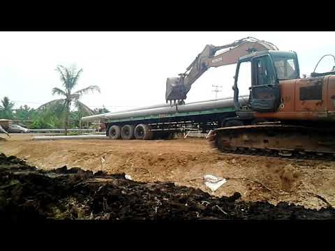 Langkah-langkah Unloading/penurunan spun pile dari trailer menggunakan excavator